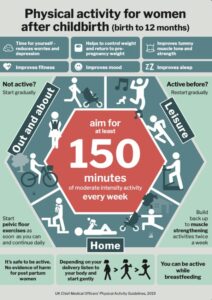 - The 2025 Canadian Guideline moves beyond mandatory medical clearance, recommending gradual progression to ~120 minutes of MVPA over multiple days, without increasing injury risk or compromising breastfeeding. Reference