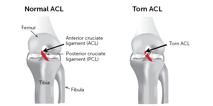 The ACL is a ligament that provides stability to the knee. This ligament is damaged by a sudden change in direction or speed, or landing from a jump in an unstable position. An ACL tear is accompanied by a popping sound, swelling, and severe pain. To reduce the risk of an ACL injury, warm up properly before playing, wear proper footwear, and focus on strength training around the knee joint.